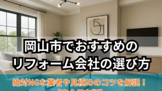 失敗しないために!岡山市でおすすめのリフォーム会社の見極め方を徹底解説【2026年最新まとめ】|あなたにピッタリのリフォーム会社を見つるための“会社選びのコツ”や”比較ポイント”も分かりやすく徹底解説。リフォーム初心者は必読です。